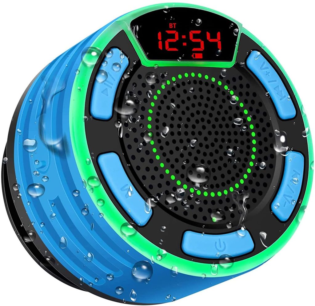 Bluetooth speakers Bluetooth Shower Speaker, IPX7 Waterproof Portable Speaker with LED Light, Suction Cup, Hook, Stereo Sound, True Wireless Stereo Mini Speaker with Built-in Mic, FM Radio, for Bathroom, Pool, Outdoors