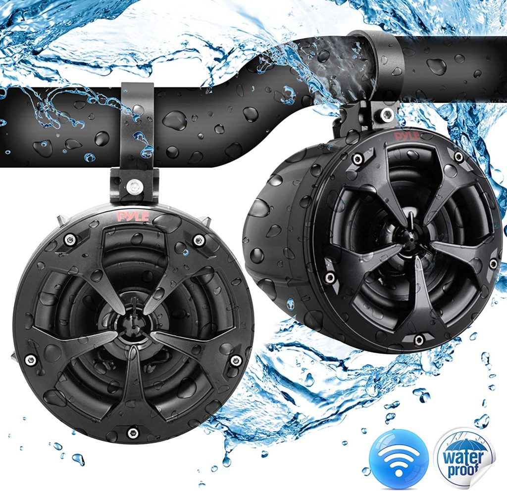Bluetooth speakers 4” Waterproof Off-Road Bluetooth Speakers - 800W Power w/ Amplified Speaker System for ATV/UTV, Aux (3.5mm) Input Jack, Marine Grade Weatherproof, Great for Use w/ all 12V Vehicles - Pyle PLUTV43BTA