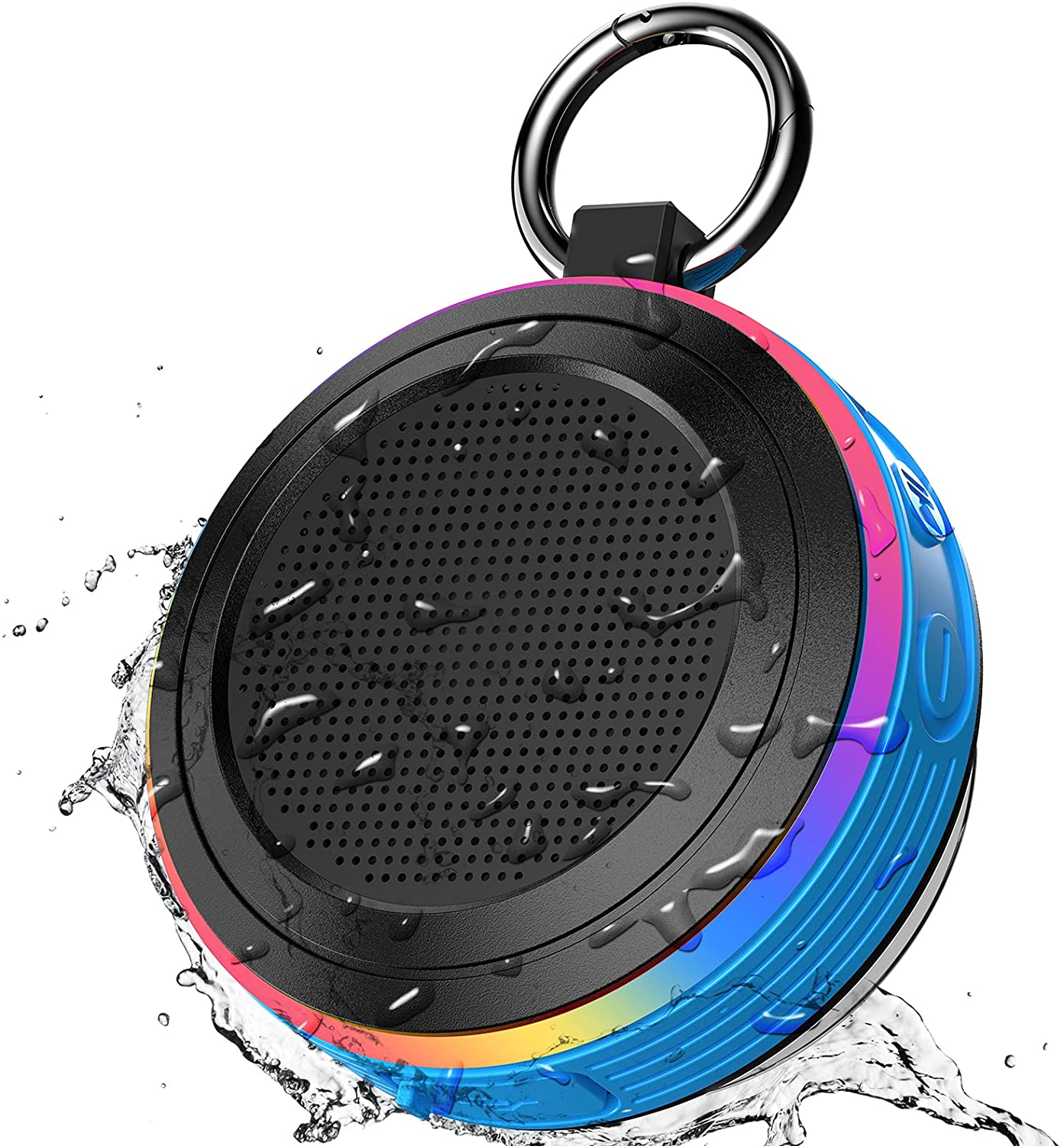 Bluetooth Shower Speaker, IPX7 Waterproof Portable Speaker with LED Light, Suction Cup, Hook, Stereo Sound, True Wireless Stereo Mini Speaker with Built-in Mic, FM Radio, for Bathroom, Pool, Outdoors