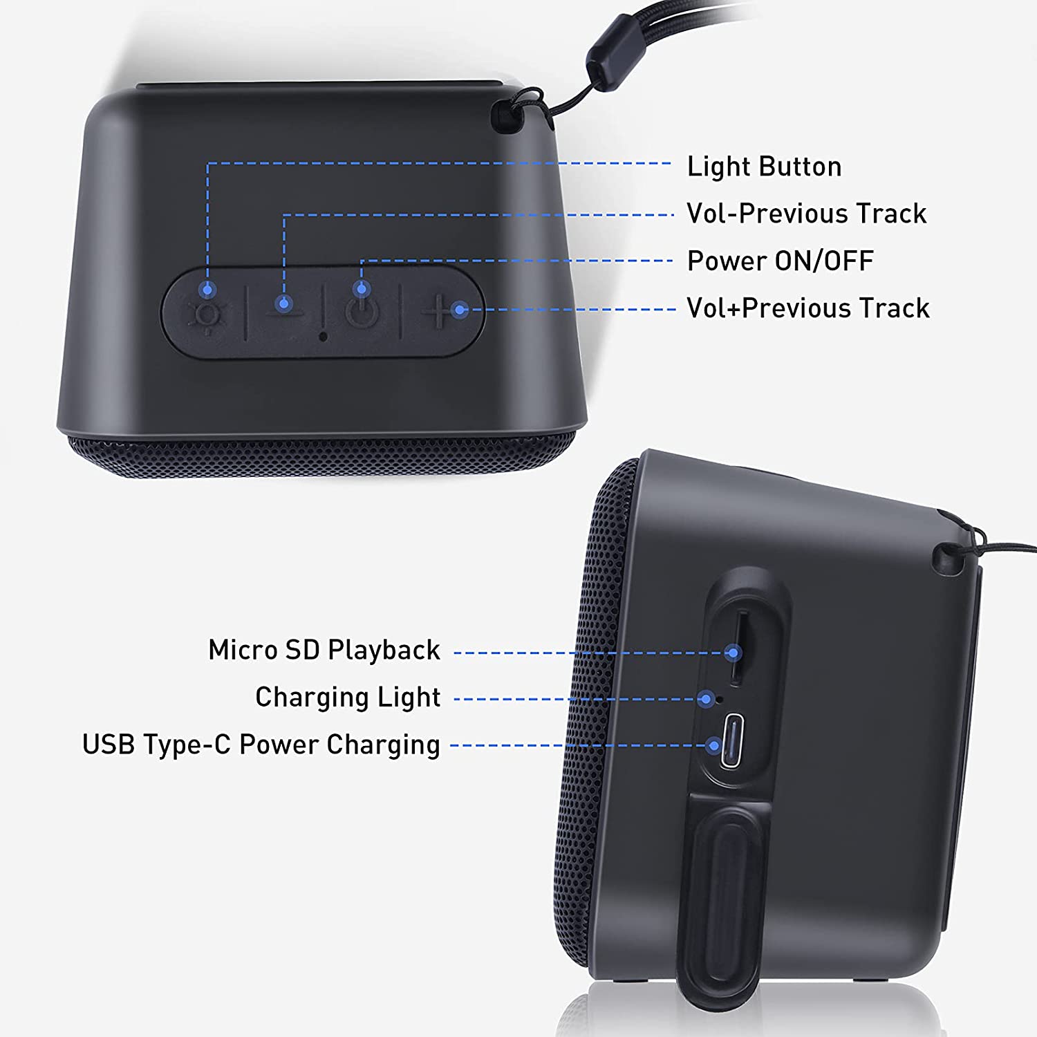 IPX7 Waterproof Portable Bluetooth Speaker, Sewowibo Wireless Bluetooth 5.1 Speaker with LED Light Show Rich Stereo Bass, Micro SD 24H Playtime, Outdoor Party Speaker TWS for Travel Beach Pool Shower