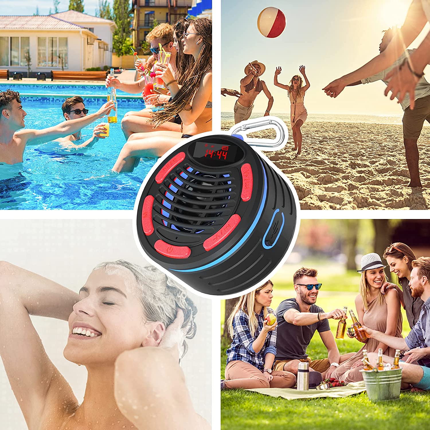 IPX7 Waterproof Shower Bluetooth Speaker BassPal Portable Wireless Outdoor Bluetooth Speaker for Shower Beach Pool Outdoors Party Travel Hiking, Bluetooth Speaker with Suction Cup LED and FM Radio