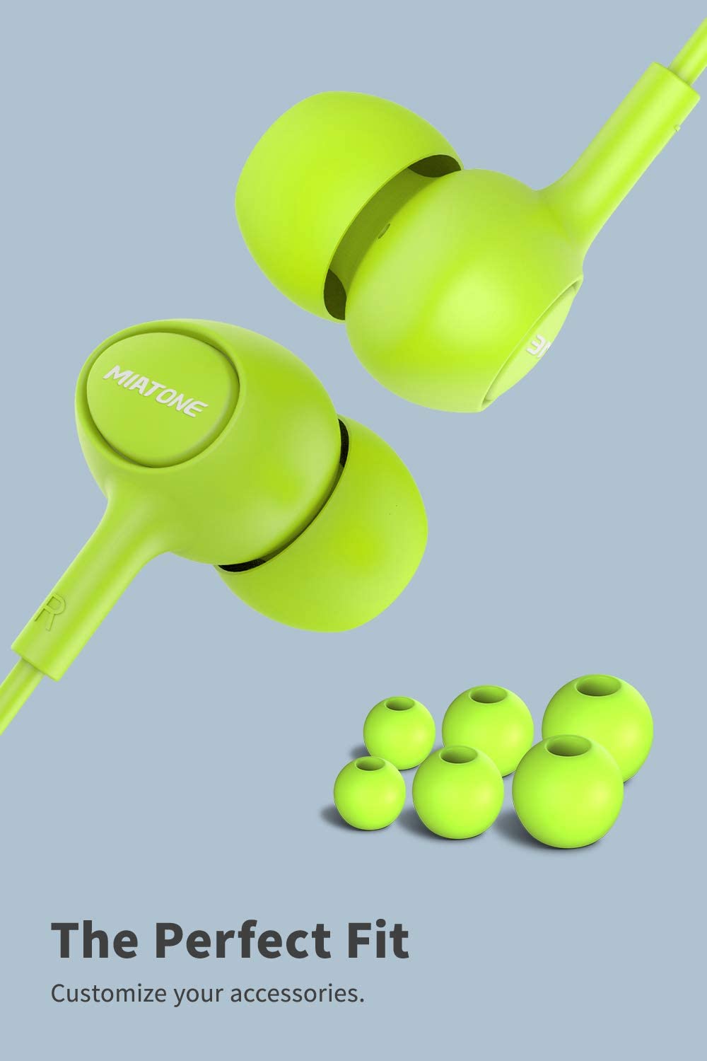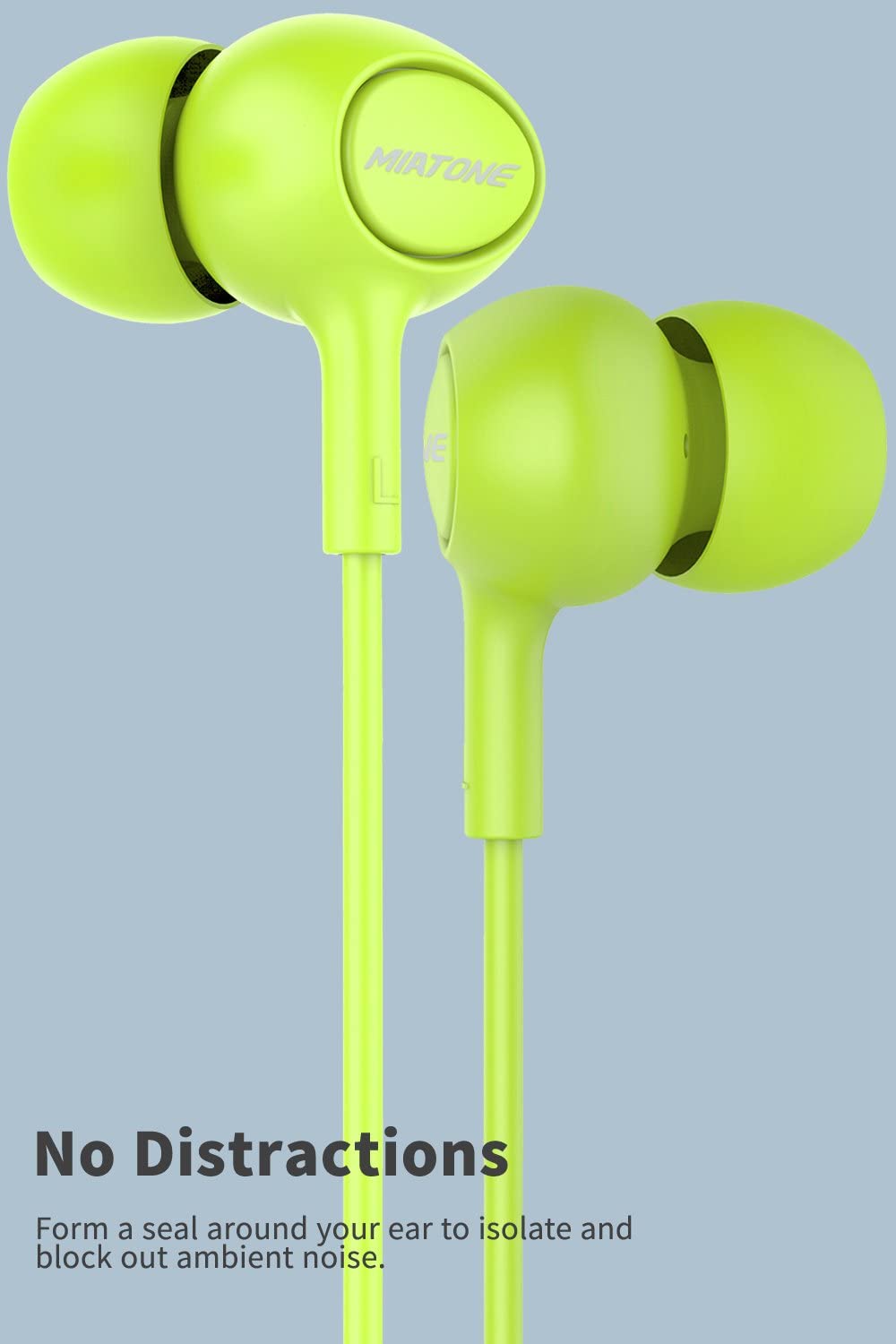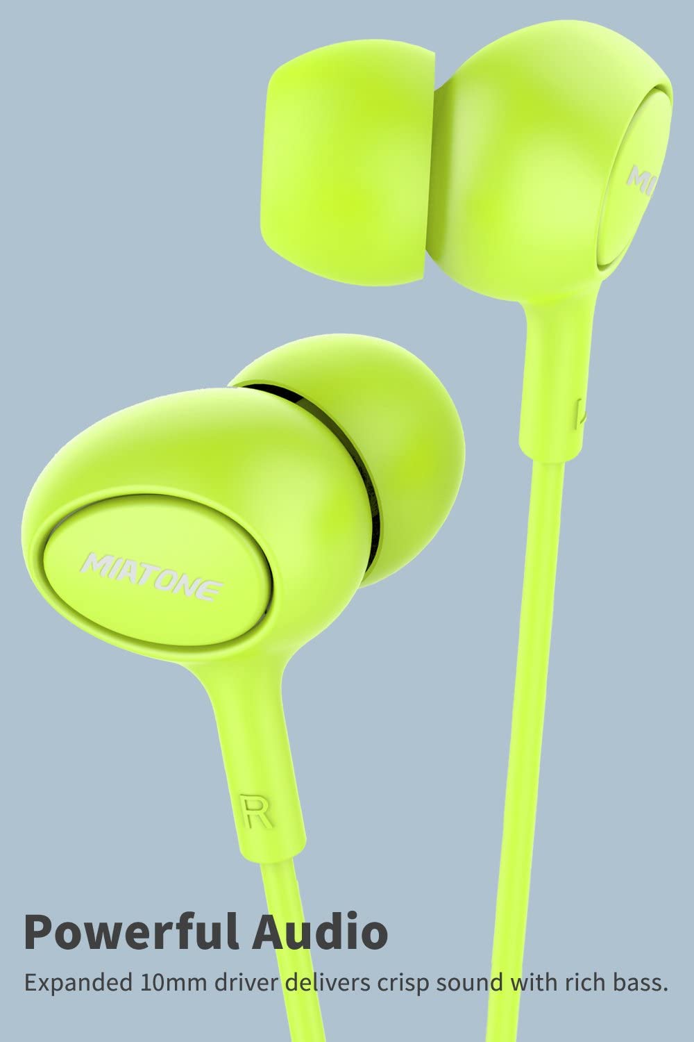 Earbuds, MIATONE Wired in- Ear Earbuds with Microphone, Dynamic Crystal Clear Sound Ergonomic Ear Buds Earphones Headphones for Android, BlackBerry – Green
