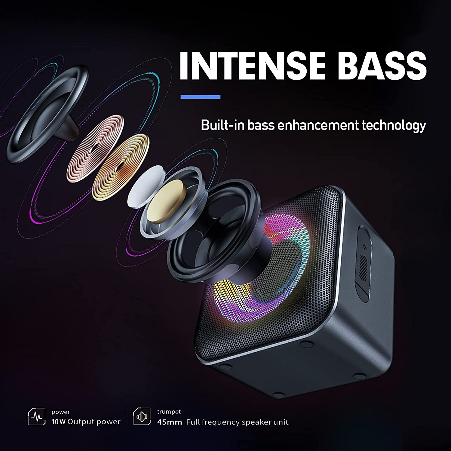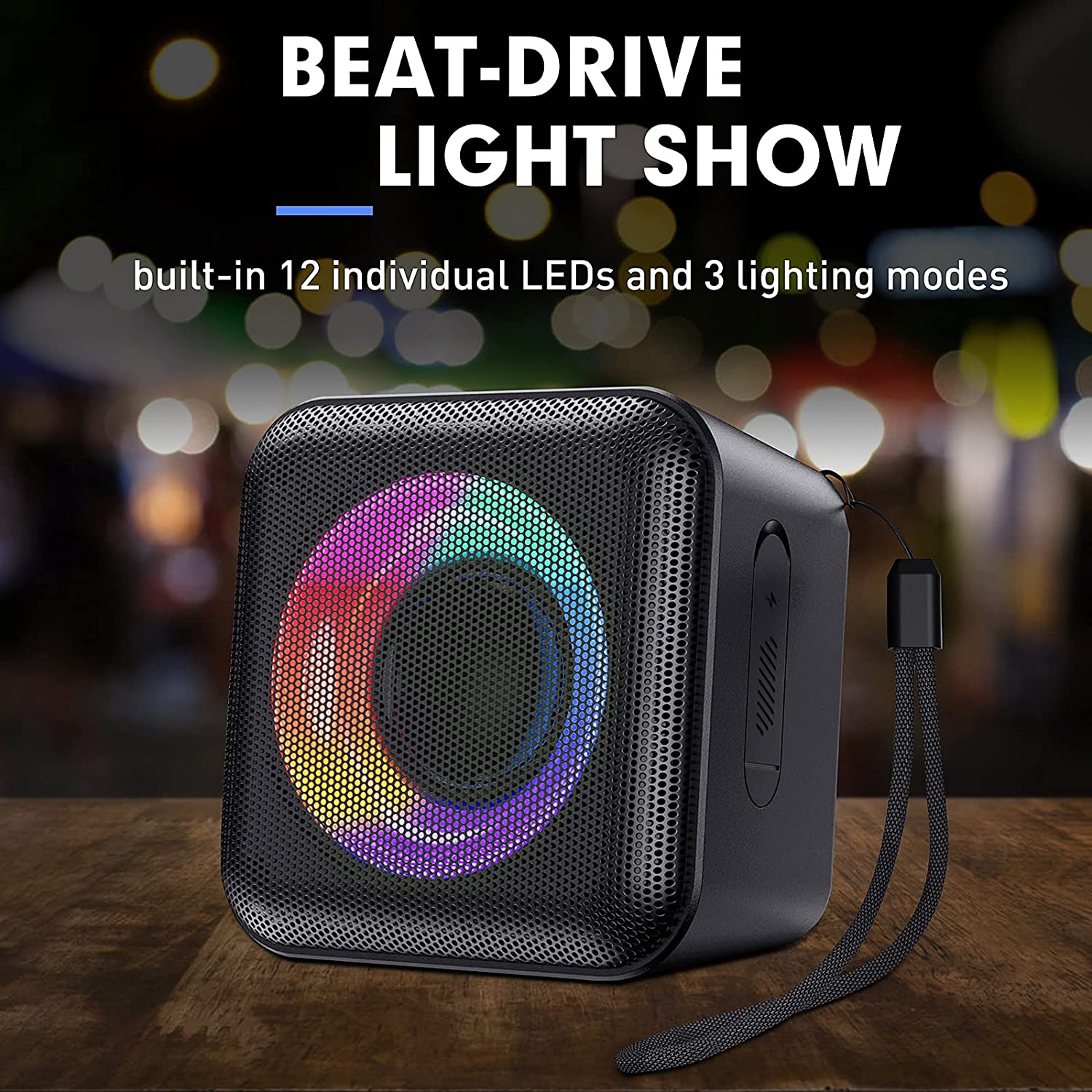 IPX7 Waterproof Portable Bluetooth Speaker, Sewowibo Wireless Bluetooth 5.1 Speaker with LED Light Show Rich Stereo Bass, Micro SD 24H Playtime, Outdoor Party Speaker TWS for Travel Beach Pool Shower