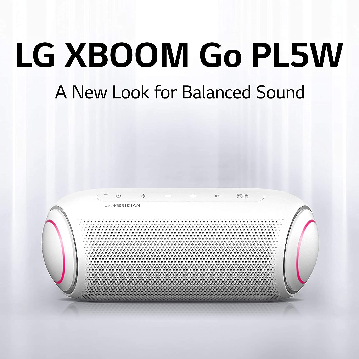 LG XBOOM Go Speaker PL5 Portable Wireless Bluetooth, Dual Action Bass, Sound by Meridian, Water-Resistant, Sound Boost EQ, 18 Hour Battery Life, LED Lighting – Black