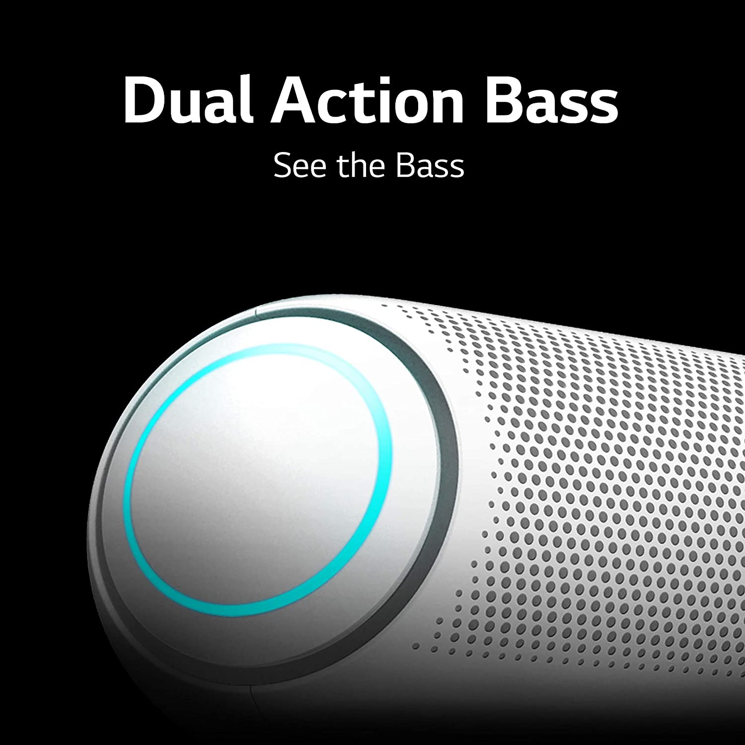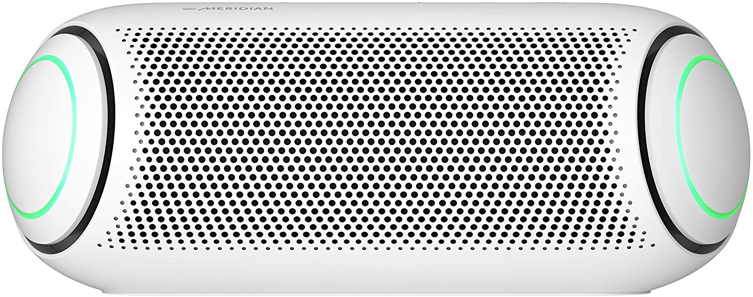 - A The small, sleek body of the LG XBOOM Go packs a big punch with 20 watts of power and stereophonic sound. With Meridian audio technology and dual passive radiators, you get one powerful speaker that couldn't be easier to pack with you. ^Daphane