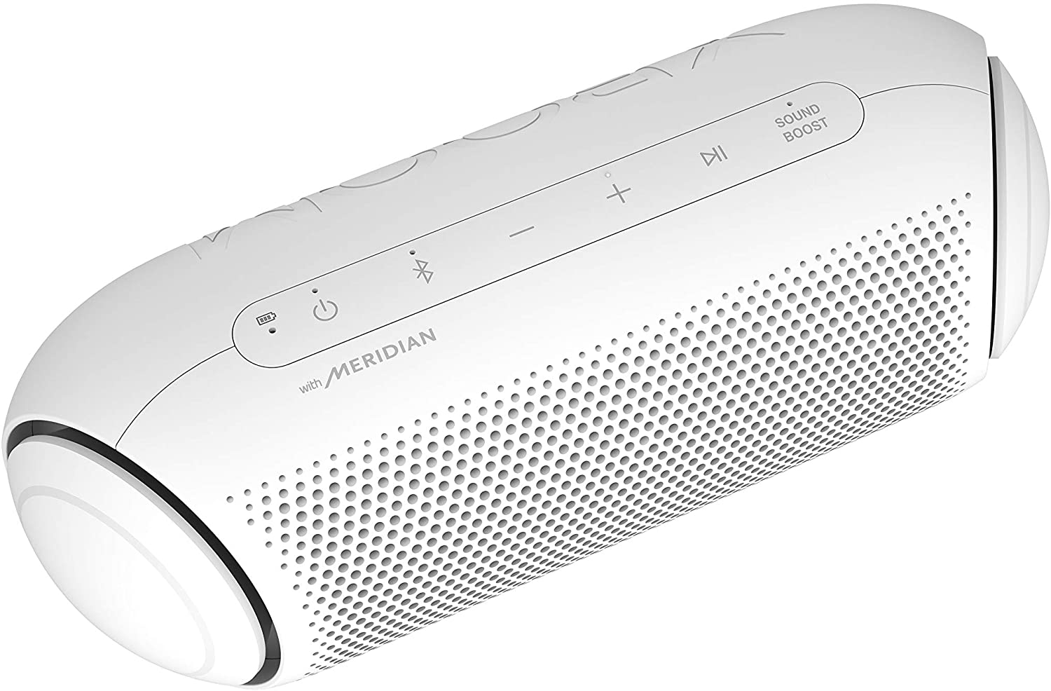 LG’s PL7, XBOOM Go portable Bluetooth speaker offers long-lasting rechargeable battery, for up to 18 hours of playback. The splash-resistant PL5 with Meridian Audio technology for richer bass and clearer vocals adds LED lights add club-style excitement. Battery life will vary with use, settings, and environmental conditions.